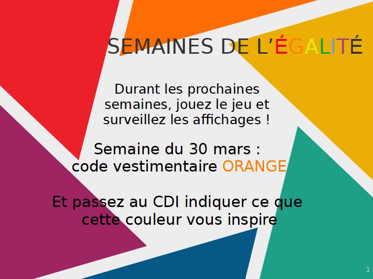 On ne s’arrête pas en si bon chemin ! :) La première semaine de l’égalité sur le thème du rouge (...)